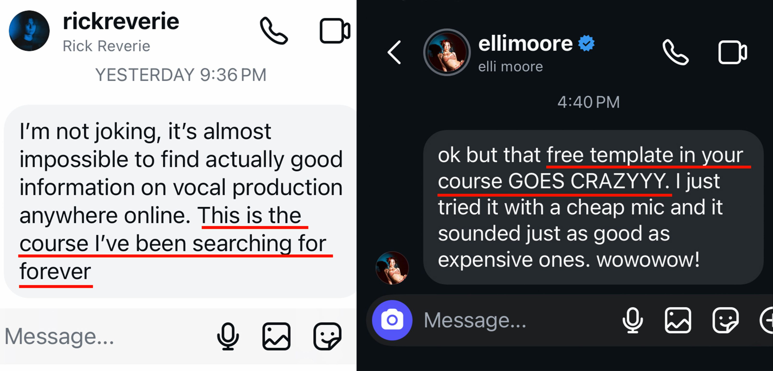 While you can use this course for vocal production in any style, here are some examples of the types of vocal layering / mixing, and FX you can learn to create:Â