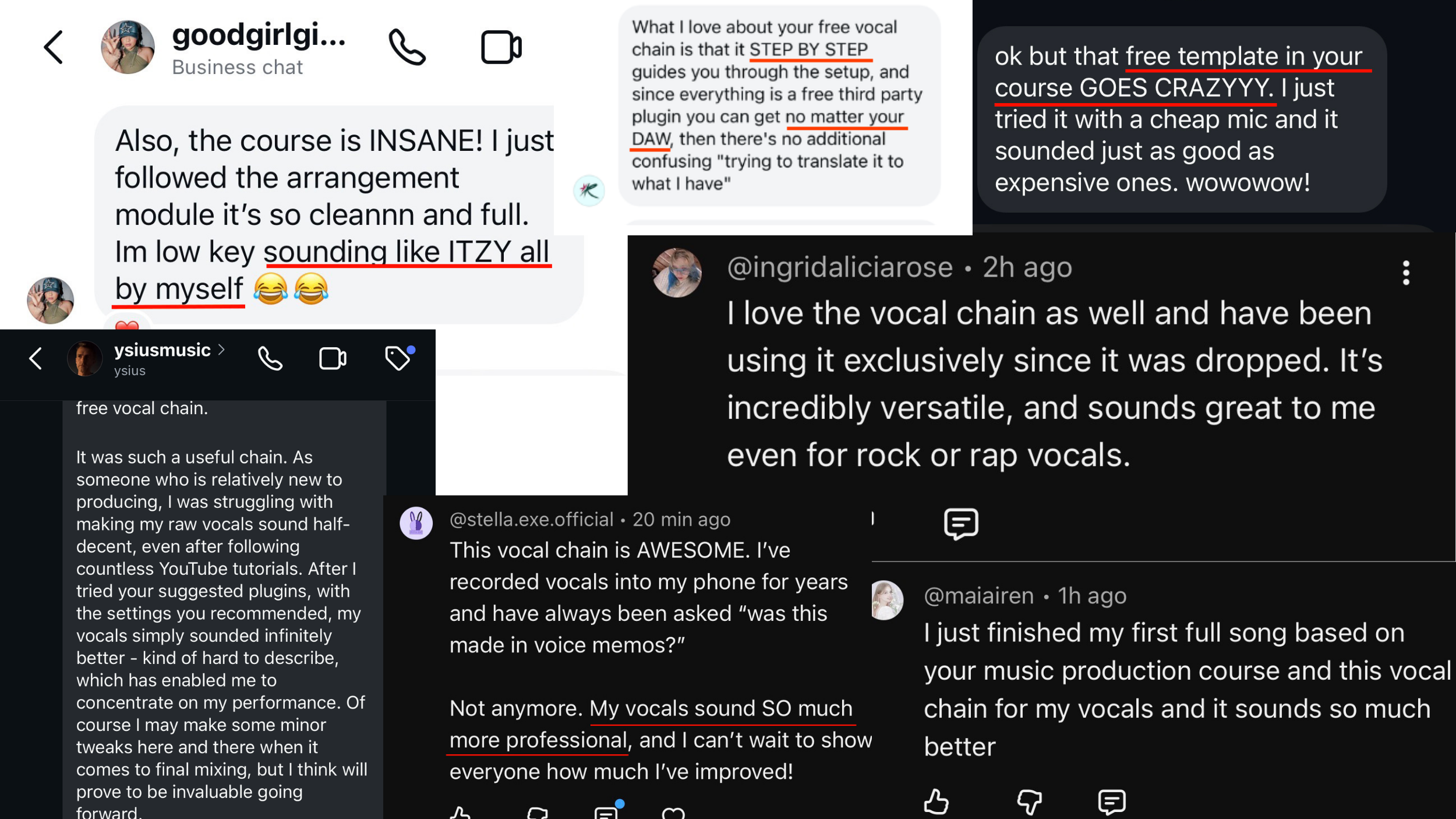 Steal the complete vocal production process behind songs with 100M+ streams - so you can stop feeling like your vocals are the weak link in your music.