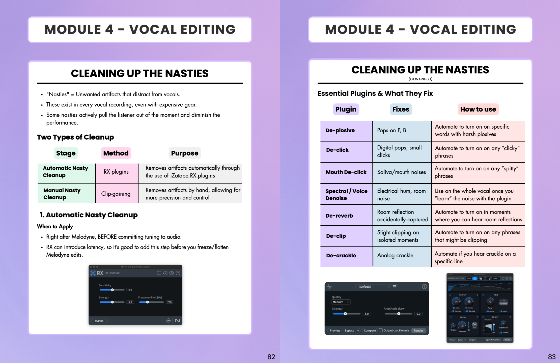- Edit your vocals so they sound tight, in tune, and professional without weird artifacts, harshness, or “T-Pain vibes”.